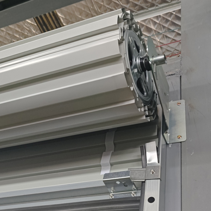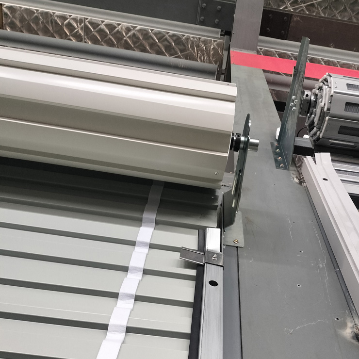 Gortina bateria konpontzen da. Gortina danborran finkatu ondoren, txanda ezin hobea egin dezake, atearen gortina leunki gora eta behera